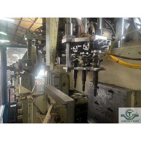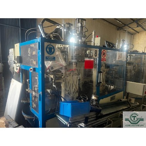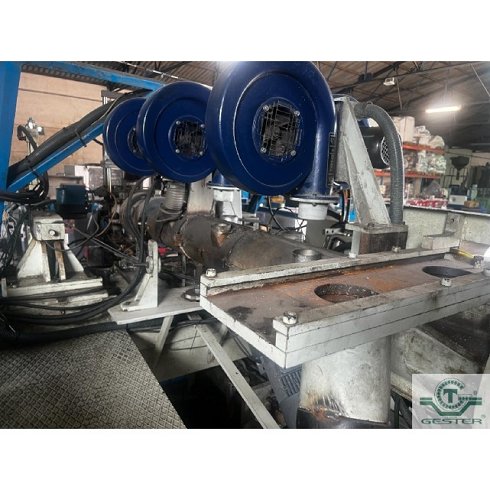 | Detalles | Sopladora Marca: Plamasa, modelo: Rothow i 6000, con extrusora 1 husillo: 90 mm Ø 20 L/D, motor: 37 KW (50 CV) corriente alterna, variador velocidad. Coextrusora para línea de visor, cambiador de filtros hidráulico: 90 mm Ø, cabezal triple con doble estación de soplado hasta botellas 10 L.con motor para sistema hidráulico: 15 KW (20 CV). Porta moldes doble: 450x450x450 mm apertura. |