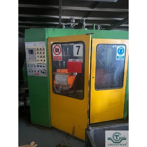 | Detalles | Sopladora - Marca: Tecnoplas, - Modelo: MP-80-2E, - Con extrusora 1 husillo: 80 mm Ø 25 L/D, - Motor: 37 KW (50 CV) - Corriente alterna, - Variador de velocidad, - Cabezal triple. - Doble estacion soplado: 11 KW (15 CV), - Porta moldes doble: 400x400x450 mm apertura. |