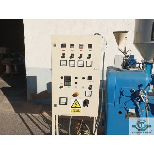 | Detalles | Línea de extrusión para monofilamento 3D Compuesta de: - Extrusora 1 husillo, marca: Bandera, 45 mm diam 25 L/D, motor: 10 cv. Con tolva secadora: 100 L, dosificador de master. Con cuadro eléctrico y variador de velocidad. - Cabezal para monofilamento 3D. - 3 Bañeras inoxidable: 2 m. - Estiraje: 4 rodillos. Con variador. - Medidor de espesor de monofilamento de 2 puntos. - Bobinador: 480x500 mm diam. Para bobinas grandes. - Desbobinador de bobinas grandes y rebobinadora doble para bobinas pequeñas. |