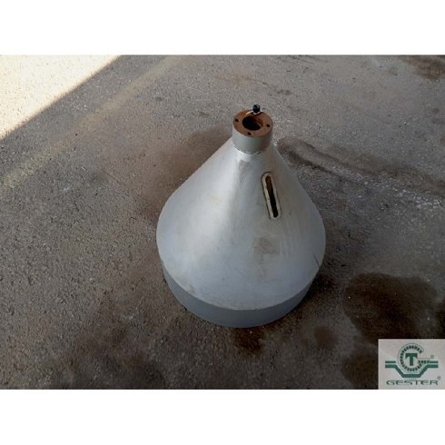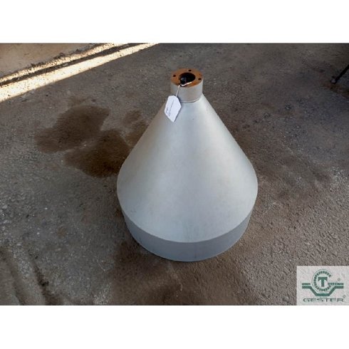 | Detalles | Tolva - Diámetro superior (boca de carga): Ø 600 mm - Altura total: 650 mm - Diámetro inferior (boca de salida): Ø 45 mm - Aluminio - Para inyectora o extrusora |