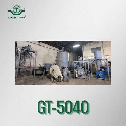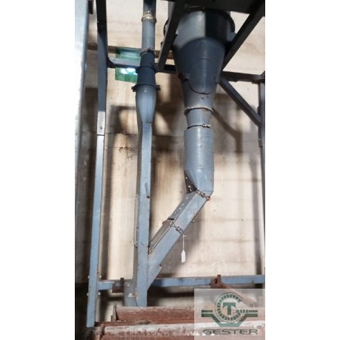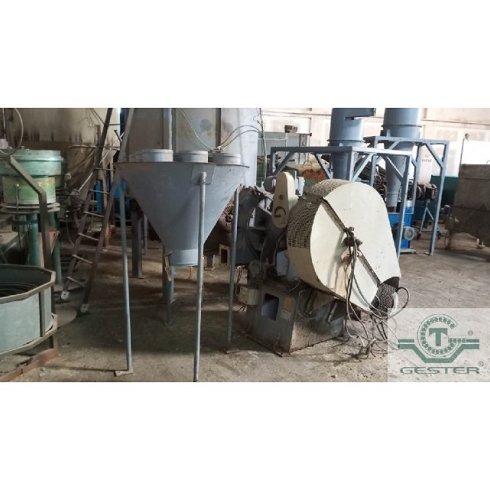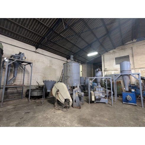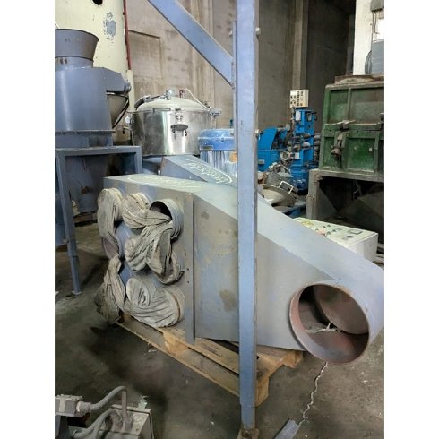 | Detalles | Aglomerador de plástico continuo - Marca: Herbold - Sin cuadro eléctrico. - Compuesto por: 1. Silo alimentador con filtros de mangas. 2. Aglomerador HU30 con motor de 75/90 kW (102/122 CV). 3. Aspirador de transporte MFT 35/450 de 7,5 kW (10,2 CV). 4. Ciclón rompeaires y aspirador MFT 30/300 de 4 kW (5,4 CV). 5. Molino de retriturar. Marca: Herbold, Modelo: SML 30/50-53-2, Motor: 11 kW (14,8 CV). 6. Aspirador de transporte tipo MFT 18/180 de 1,5 kW (2 CV). 7. Sistema de separación de finos con aspirador de 2,2 kW (3 CV) con ciclón y retorno de finos a silo principal. |