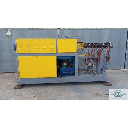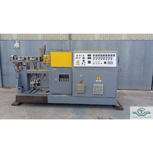 | Detalles | Extrusora - Corrotante, - Marca: OMC, - Tipo: EBV 31/32D, - Año: 2001. - Husillos componibles de 31 mm Ø. - Camisa tipo libro. - Motor de 11 Kw con variador refrigeración por agua y cabezal de hilos. - Potencia total instalada: 25 kw |