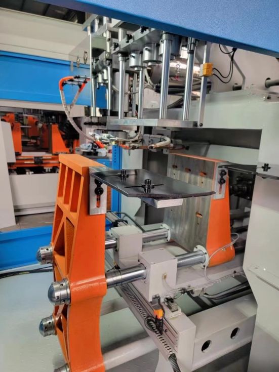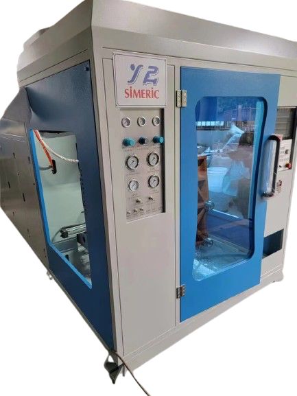 | Detalles | Materia prima adecuada: PP,PE,EVA, Volumen máximo del producto: 5L Capacidad máxima de 3 cabezales / molde: 1.25 L Distancia entre cabezales: 120 mm Altura máxima del producto: 400 mm Capacidad de producción: 3 cabezales x molde con estación única: 500-700 PCS/HR Fuerza de sujeción: 120 KN Carrera de apertura de las platinas: 200-550 mm Tamaño máximo del molde: 440 mm (ancho) 450 mm (alto) Espesor del molde: 205-300 mm Numero de zonas de calefacción: 7 partes Diámetro del husillo: 70 mm. Estación única. Relación L/D del husillo: 1:25 L/D Capacidad plastificante: 60 kg/hr Potencia del motor de extrusión: Estación única: 18.5 kw Consumo total: Estación única: 62 kw Consumo medio de energía Estación única: 16 kw Se requiere de instalación neumática: 0,6 MPa Dimensiones de la máquina: 4000 x 1800 x 2400 mm Peso de la máquina: 4 toneladas Material de fabricación husillo: 38CrMoAIA, nitrurado Material del cilindro: 38CrMoAIA, nitrurado Sistema de enfriamiento Sección de alimentación de refrigeración por agua, con control de temperatura, el resto por enfriamiento mediante aire. |