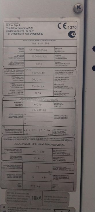 | Detalles | 8 Enfriadoras de agua, MTA, 88,3 kw, modelo Tae Evo 301, 380III, peso : 775 Equipos revisados. totalmente cargado de gas y con garantia, Iva no incluido.Envios a toda España y Europa. Costes envio no incluidos Referencia :1148