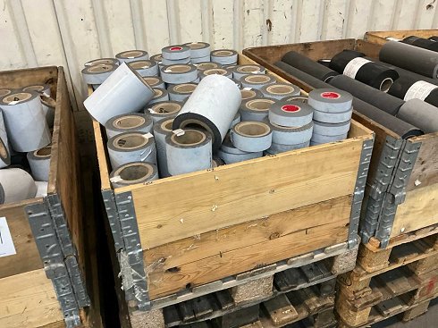 en racha; varios anchos de 30 a 195 mm; longitud aproximadamente 100 metros por rollo; incluyendo paletera; sin palés; |