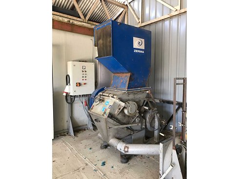 Granulador Zerma. Incluye el armario de control. Armario de control para máquina, extracción y banda de alimentación. Dimensiones y peso estimados +/- 5%. La tolva puede desmontarse para su transporte.