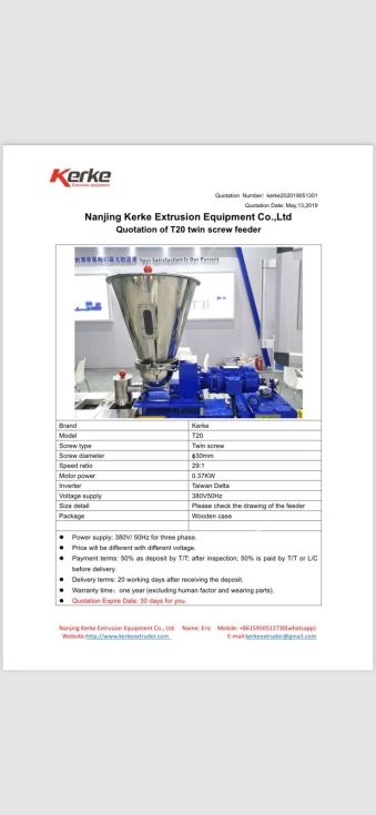 | Details | Dosificador volumétrico de hasta 60+60 kgs hora.Para extrusión