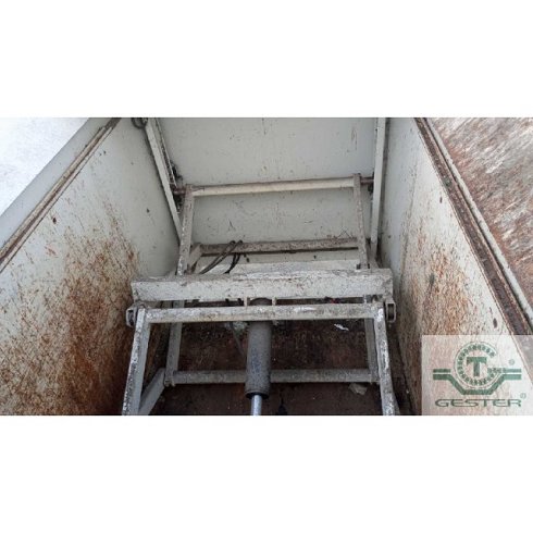 | Details | Tolva alimentadora - Con empujador hidráulico y plataforma - Tamaño: 1500 mm x 1500 mm y 1700mm de largo - Con grupo hidráulico de 3 kW (4CV) - Con depósito de 30 litros |