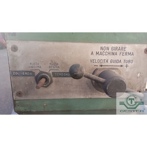 | Details | Bobinador de tubo de doble bobina - Marca: LUNARDON - Modelo: ML-4 - Doble bobina de 2,2 metros de diámetro - Motor: 3 CV (2,2 kW) - Variador de velocidad y guiador automático |