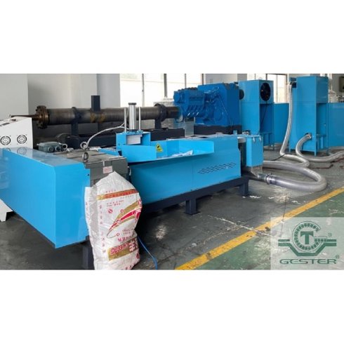 | Details | Extrusora peletizadora - Marca: GESTER - Modelo: JR110 - Producción 100-150 kg/h - Potencia: Motor principal 55 CV (40 KW) - Diámetro husillo: 110 mm |