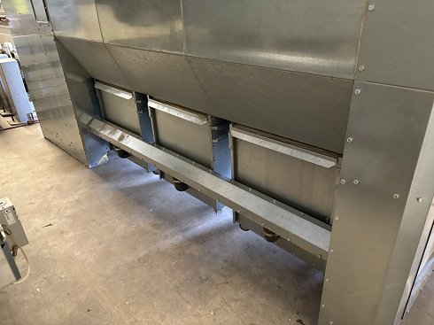 | Detalles | Technical characteristics Fan power : 11 kWAIr flow 8593 m3/hSuction connection diameter : 350 mm3 sealed dust collection traysComplete module with dust collectorSmall sizeFilter adapted for indoor and outdoor useVacuum suction (fan located after dust and chip filter)Control cabinet Power and Motors Voltage: 400 VPluging: Three-phasedPower: 11 KwMotor: 15 CV Overall dimensions Lenght: 3940 mmWidth: 1020 mmHeight: 2250 mmWeight: 1300 Kg |