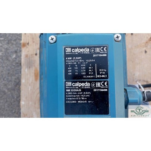 | Detalles | Bomba de agua - Marca: CALPEDA - Motor: 5.5 cv (4 kW) |