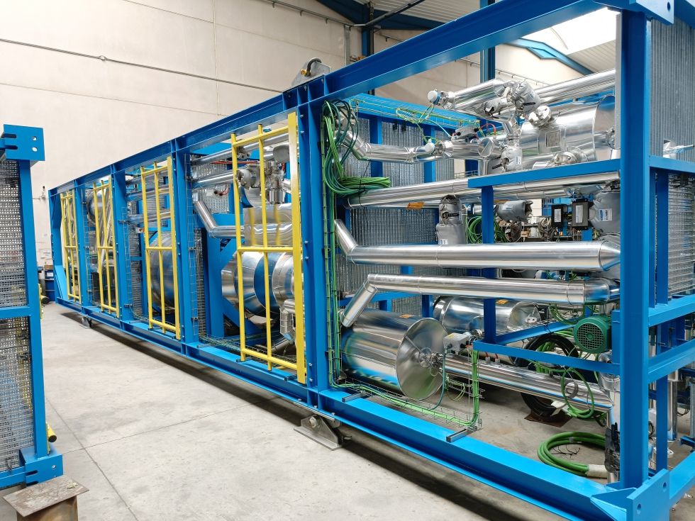 | Detalles | Evaporador Short Path de 5m2 de superficie de intercambio de calor. Construido en inoxidable.Todavía en su caja de embalaje. OCASIÓN. DOCUMENTACIÓN COMPLETA. Dimensiones principales: Diámetro exterior: 500mm. Altura total: 5.600mm Tipo de rodillos: compuesto por 8 hileras de rodillos fabricados en PTFE con fibra de vidrio Incorpora sistema antisalpicaduras para evitar contaminación del producto destilado Temp. diseño: 280ºC Temp. proceso: 250ºC Presión diseño (barg): -1/4 Material de construcción (proceso/servicio): SS 316L/SS 304 Potencia motor: 4 kW, 1500 rpm IP-55. Tensión 400 V III 50 Hz Incluye cierre mecánico doble y circuito para cierre, compuesto por botellín interno, bomba de recirculación, nivel y manómetro. Clasificación eléctrica: zona no clasificada ATEX. EQUIPO DE DESGASIFICACIÓN Función: Equipo de desodorización con relleno en su interior para aumentar la superficie de contacto y mejorar el proceso de evaporación de volátiles. TRAMPA DE VACÍO ETAPA DESGASIFICADOR Función: condensador de volátiles. Se situará en la línea principal de vacío del equipo desgasificador. TRAMPA DE VACÍO ETAPA SHORT PATH Función: condensador de volátiles. DEPÓSITO CONCENTRADO Función: Depósito colector de producto concentrado DEPÓSITO DESTILADO Función: Depósito colector de producto destilado SISTEMA DE VACÍO-DESODORIZADOR Función: vacío de la etapa de desodorización de producto de alimentación. SISTEMA DE VACÍO- SHORT PATH Función: vacío de la etapa de destilación molecular. |