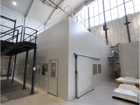 De tres lados con puerta corredera, 8 ventanas, puerta de entrada, grúa móvil voladiza con capacidad de polipasto eléctrico "Konecranes" de 1250 kg, luminarias LED, construcción de acero y unidad de tratamiento de aire "Robatherm" tipo Tl50-09/12 en la parte superior, capacidad 7640 m3, compuesta por: 2 unidades de filtro, 2 silenciadores, 2 ventiladores, unidad humidificadora y calentador eléctrico incorporado (unidad de refrigeración no incluida) |