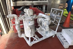 Bomba de doble diafragma con filtro gaf acero inoxidable 15 litros sobre carro de segunda mano