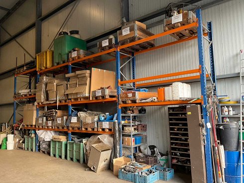 Consiste en: válvulas mariposa, bombas sumergibles, válvula de placa, bombas, mangueras para bramd, repuestos, etc. Incluye: (4x) estante de piezas Altura: 440 cm, ancho: 270 cm, Profundidad: 100 cm. |
