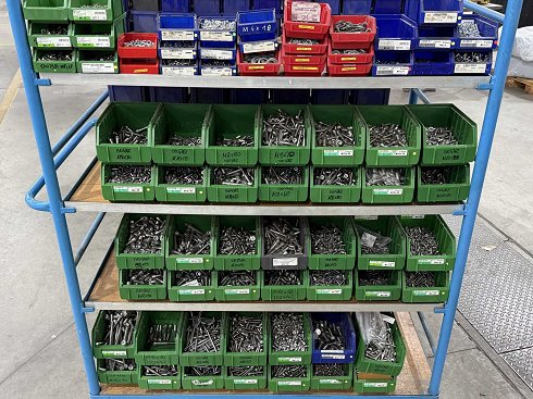 Tornillos de diferentes diseños y tamaños, materiales: galvanizado y acero inoxidable; para más detalles, véanse las placas con el nombre, ATENCIÓN: Cajas y tornillos plásticos de entrega solo para entrega, el carro de estantería no está incluido en el ámbito de entrega |