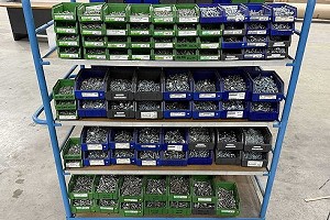Armario de acero con material de fijación