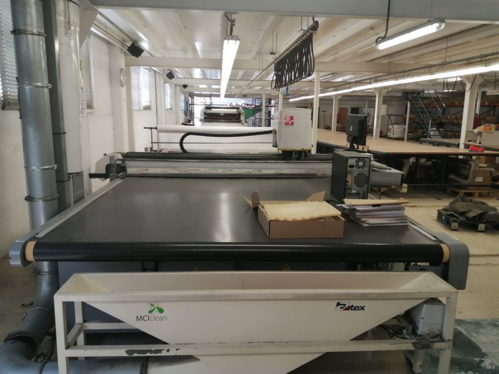 Equipo completo de corte asistido por ordenador. máquina con sistema de avance automático, con aspiración incorporada para la sujeción del corte del tejido, afilado automático de la cuchilla, sistema de generación de vacío, control variable de velocidad de la cuchilla, alta eficiencia de vacío con bajo consumo de energía y ruidos y cinta de evacuación del tejido. marca: investronica sistemas modelo: diamond va00e20 altura de corte:7 cms perforadora: incluida ancho util: 1 80 mts