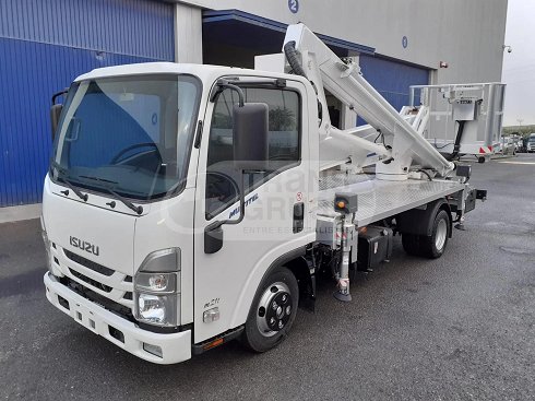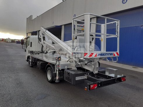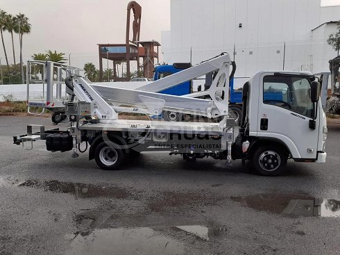 Disponible a la venta esta plataforma aérea de 20 m, Multitel HX200EX montada sobre camión ISUZU. La plataforma está fabricada completamente de aluminio, excepto la torreta, o sea que es una plataforma super ligera. Conjunto entero montado y legalizado. La plataforma tiene una altura de trabajo de 19,9, alcance lateral de 9,60 m, cesta de aluminio para dos personas (carga 225 Kg), con toma eléctrica a 230 v. para conexión de herramientas de mano, giro independiente de la cesta de 65º izq/dcha, y arranque y parada del motor del vehículo también desde la cesta.