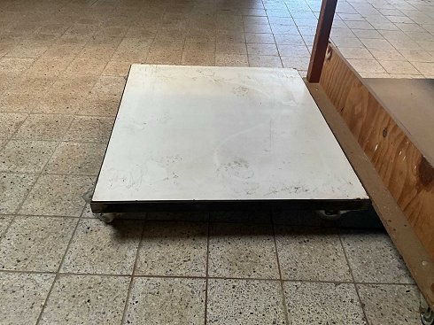 Equipado con 4 ruedas giratorias, en versión metálica con tapa de madera de formica. |