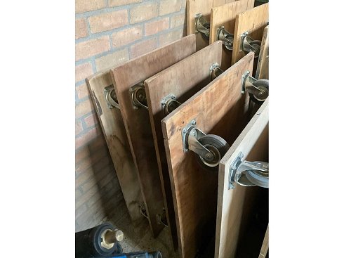 Equipado con 4 ruedas giratorias y techo de madera. Incluyendo la tapa de madera de aproximadamente 110 x 60 cm. |