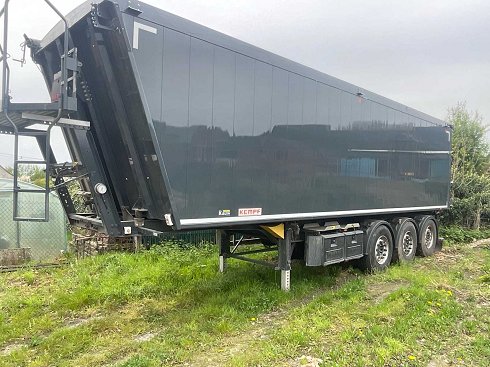 KEMPF SKM semirremolque basculante de aluminio – 2022 – 3 ejes – GVW 39T – Liner – CT OK Remolque basculante de aluminio KEMPF, tipo SKM, año de fabricación 2022, puesto en circulación por primera vez el 01/09/2023. Equipado con un basculante de aluminio con revestimiento interior, ideal para el transporte a granel. Versión sin suelo móvil (clásico basculante). Equipamiento: 3 ejes (3 x 9.000 kg) Suspensión neumática Sistema de frenos Knorr-Bremse Cajas de almacenamiento laterales Escalera de acceso + pasillo delantero Puerta trasera hidráulica Soportes mecánicos Protectores para bicicletas Iluminación trasera completa Características técnicas: GVW: 39.000 kg Carga útil: ± 32,840 kg Peso en tare: ± 6,160 kg Quinta rueda de carga: 12.000 kg Identificación: VINO: WKY3S0039NM044926 Registro: QAQC458 Estado: Buen estado general Interior limpio, forro en buen estado Desgaste normal (chasis, llantas, elementos periféricos) Vehículo inmovilizado durante un tiempo Inspección técnica: Válido