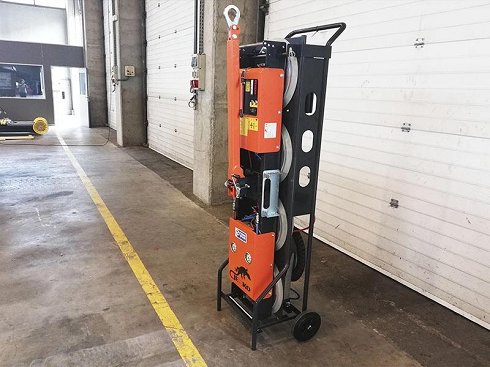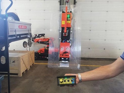 Consta de seis ventosas (4+2), y tiene unas dimensiones de mm 1680 x 250 x 1310. Funciona con batería eléctrica a 12 v y 7 Ah. El peso del manipulador completo es de solo 85 Kg. Opcionalmente puede funcionar con un radiomando.