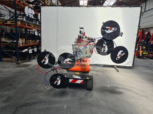 Este equipo está equipado con una ventosas para manipulación de vidrios, convirtiéndose entonces en un robot cristalero.