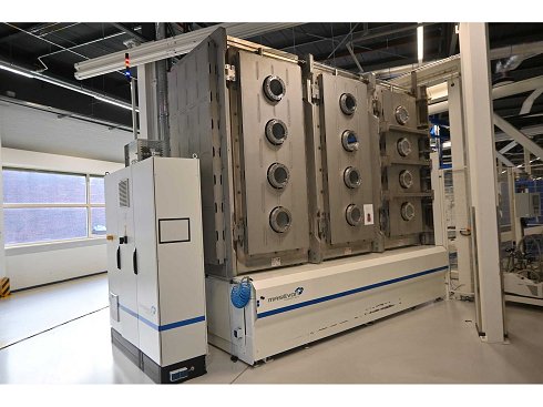 Herramienta de celda de llenado con líquido LC. Consta de un sistema de transferencia, manipulador, válvula de compuerta, 2 bombas de vacío Pfeiffer WD 400 Combi-Line (año de construcción: 2020) con contenedor (bobina), capacidad: 2 contenedores, cámara de vacío y caja eléctrica con pantalla táctil HMI para el operador. Capacidad de sobrepresión de 1,5 bar, Volumen: 11,800 litros. Incluye 2 manómetros, válvulas de vacío, etc. Incluye pantalla táctil para operador Beckhoff CP 3919-0010. Peso aprox. 37.000 KG. Inversión en máquinas: 610.000 € excl. IVA. |