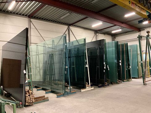 Se incluye un lote de varios tipos de placas de vidrio en 15 puentes de acero, de varios espesores de 4, 6 y 8 mm |