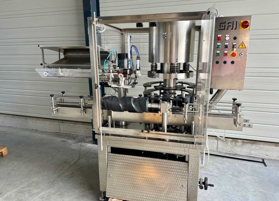 CARACTERÍSTICAS TÉCNICAS - Marca: GAI - Monobloque automático: taponadora, cerradora - Modelo: 4264DL - Número de serie: AAD6830 - Año: 2001 - El monobloque 4264D es una máquina automática para el alisado en cadena de botellas de diferentes tamaños. La máquina consta de una estación de distribución de cápsulas y una estación de alisado provista de 4 cabezales pulidores para cápsulas de estaño, complejas y de aluminio. - Cadencia: 600 a 3000 botellas/hora - Autonomía de cápsulas: 500 DIMENSIONES - Longitud: 2000 mm - Anchura: 965 mm - Altura: 2090 mm - Peso: 800 kg |