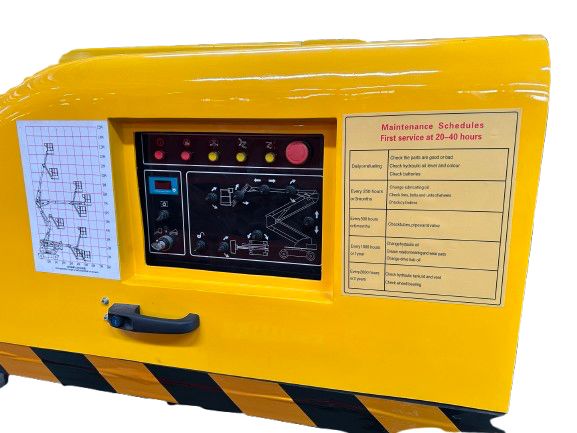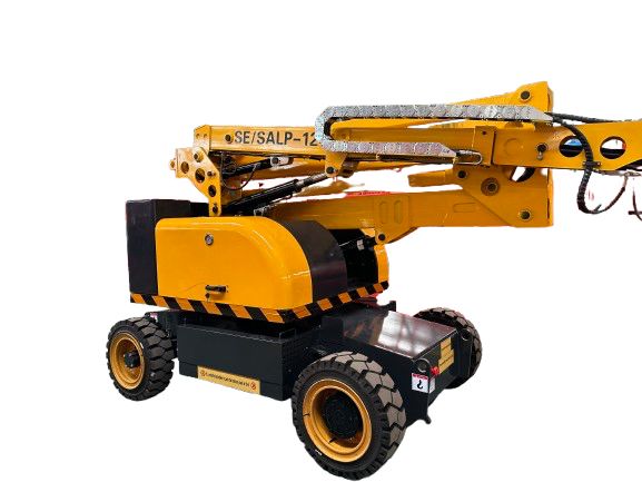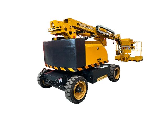 Altura máxima de trabajo: 14 m Altura máxima de la plataforma: 12 m Radio máximo de trabajo: 6.9 m Altura máxima de cruce: 6.4 m Carga: 230 kgs Bateria de plomo-ácido, 48V/360AH. Bateria de litio 48V/350AH Cargador 48V/40A Velocidad: 5 km/